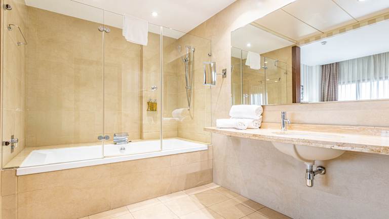 Die schallisolierten Zimmer sind ausgestattet mit einer Klimaanlage, einer individuell steuerbaren Heizung, einer Minibar, einem Schreibtisch sowie einem Safe. Zur Ausstattung gehören ein Telefon mit Direktwahl, ein TV-Gerät mit Satelliten-/Kabelempfang und kostenfreies WiFi. Die Badezimmer verfügen über eine Dusche und eine Badewanne, ergänzt durch einen Haartrockner, einen Kosmetikspiegel sowie Kosmetikartikel. Rollstuhlgerechte Zimmer sind ebenfalls verfügbar.