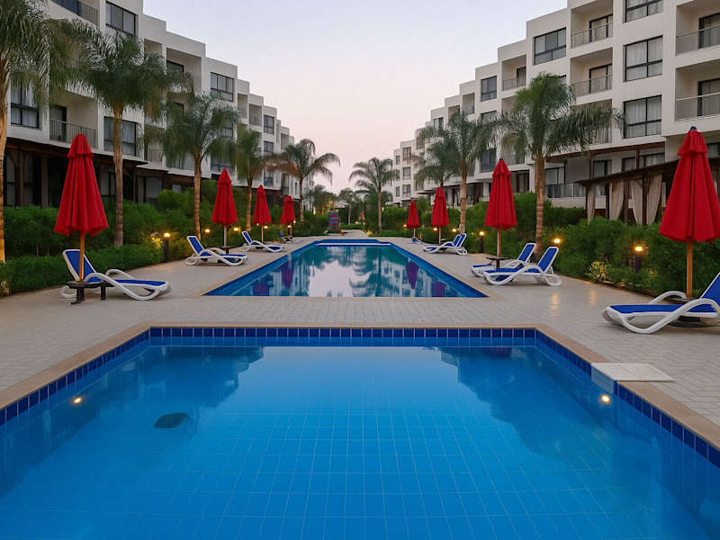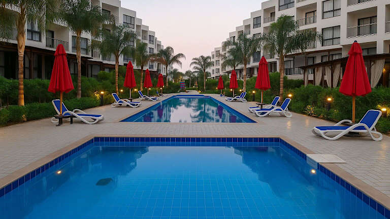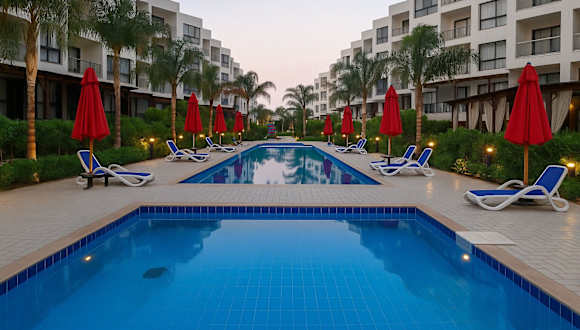 Das Hotel Serene Seaside Getaway Porto Saids Hidden Gem befindet sich in `Ezbet Shalabi el-Rûdi und bietet eine ruhige Umgebung mit Blick auf die Stadt und den Pool. Die Lage ermöglicht entspannende Ferien in der Nähe des Wassers.