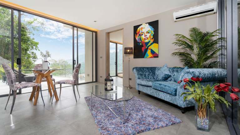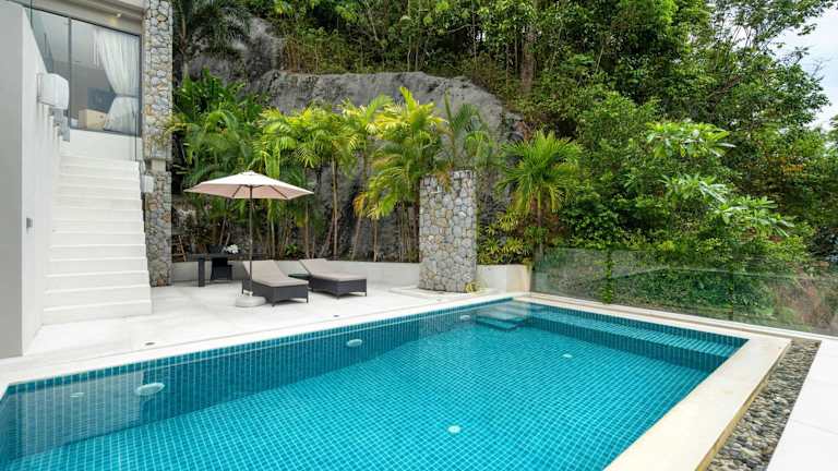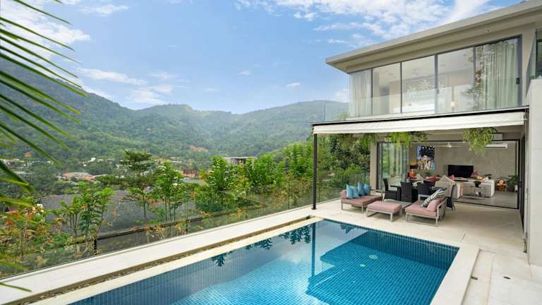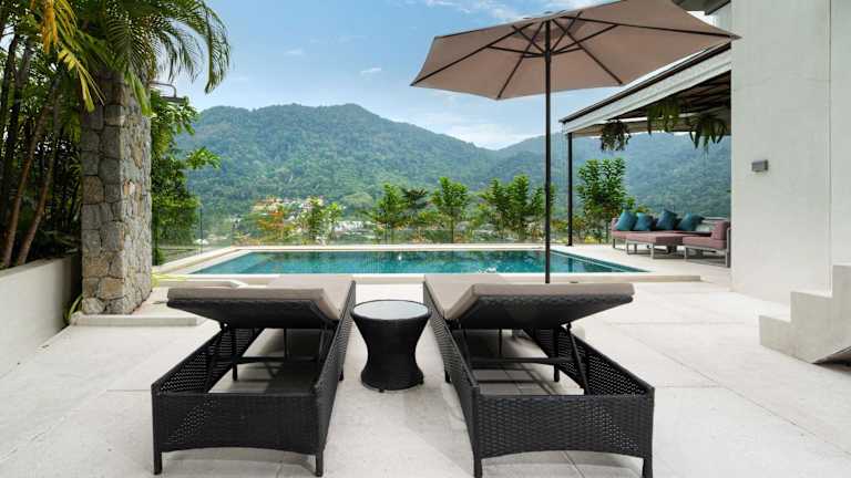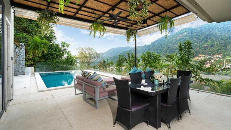 Die Unterkunft befindet sich in einer ruhigen Umgebung, etwa 2,1 km vom Strand Kamala entfernt, und bietet einen beeindruckenden Blick auf die Berge. Die nächstgelegenen Sehenswürdigkeiten wie das Patong Boxstadion und das Einkaufszentrum Jungceylon sind 11 km entfernt, während der Flughafen Phuket 27 km entfernt liegt.