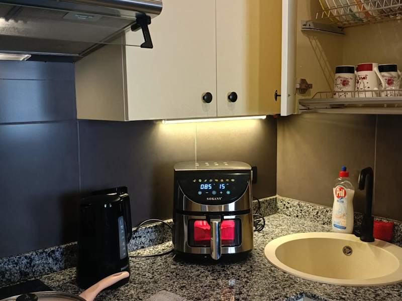 Die Ferienwohnung verfügt über zwei separate Schlafzimmer, ein Wohnzimmer und eine voll ausgestattete Küche mit Kühlschrank sowie ein Badezimmer. Klimaanlage ist vorhanden, und in der Unterkunft werden Handtücher und Bettwäsche zur Verfügung gestellt. Zudem gibt es einen Kinderspielplatz für die kleinen Gäste.