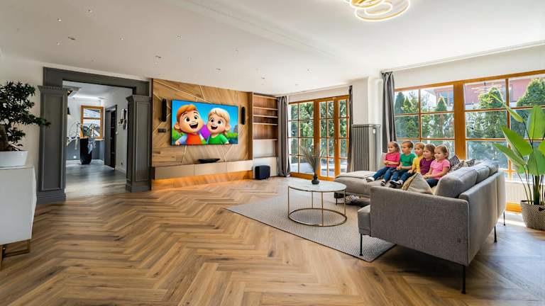 Die Villa umfasst vier Schlafzimmer, zwei Badezimmer mit Dusche, ein Wohnzimmer mit Flachbild-TV sowie eine Küche mit Kühlschrank und Geschirrspüler. Handtücher und Bettwäsche werden bereitgestellt. Die Villa ist klimatisiert und bietet eine Nichtraucherumgebung.