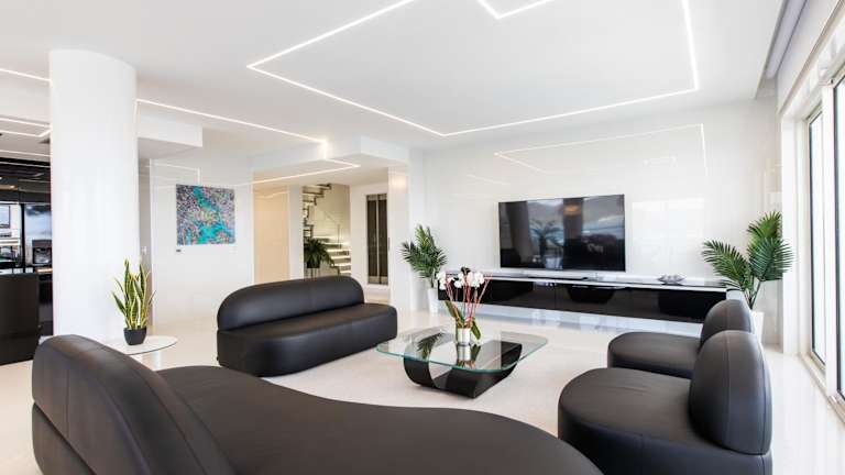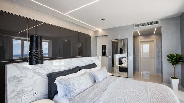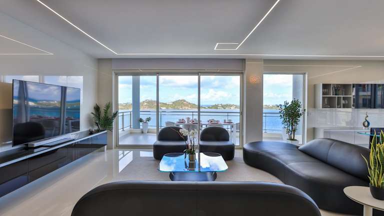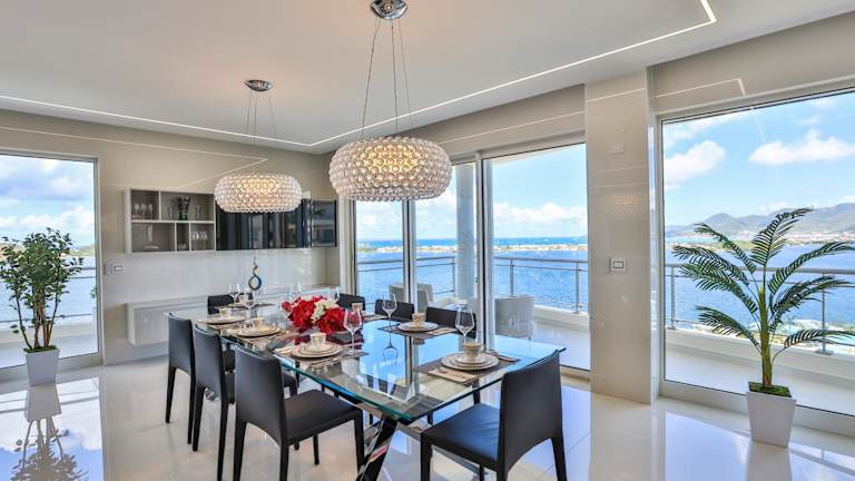Die Ferienwohnung umfasst vier Schlafzimmer, vier Badezimmer und eine voll ausgestattete Küche. Sie ist mit einem Flachbild-TV und einem Essbereich versehen. Von der Terrasse haben die Gäste einen Blick auf das Meer.