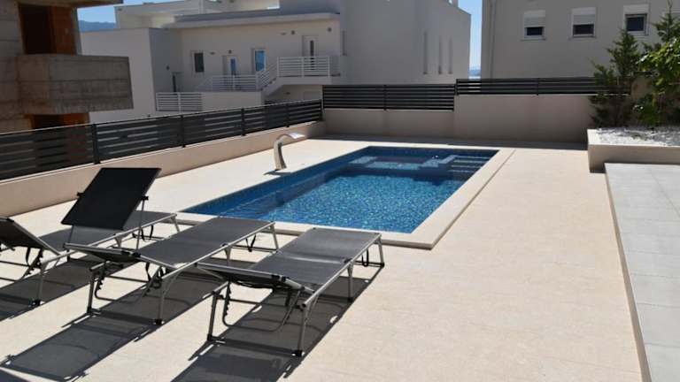 Serenity Residence with Sea view bietet Übernachtungsmöglichkeiten mit einem eigenen Pool und schönem Gartenblick. Die Unterkunft hat eine Terrasse, die ideal für entspannende Momente im Freien ist.