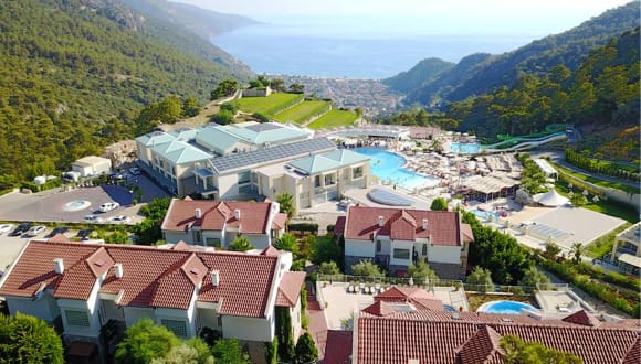Das Hotel liegt in Ölüdeniz, ungefähr 700 m vom Sandstrand entfernt. Der Ort Hisarönü ist in etwa 15 Gehminuten zu erreichen und Fethiye liegt rund 15 Fahrminuten entfernt. In der Nähe befinden sich zahlreiche Restaurants, Geschäfte und Bars. Der Flughafen Dalaman ist etwa 60 km entfernt, die Fahrzeit beträgt rund 1 h und 15 min.