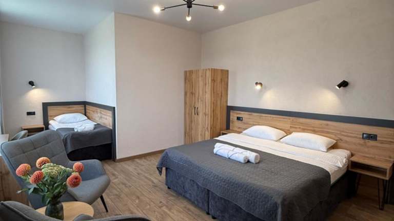 Das Seven Hills Hotel befindet sich in Stoyanka, weniger als 20 km vom Bahnhof Kiew und 20 km von der Kirche des heiligen Kyrill entfernt. Verschiedene Sehenswürdigkeiten wie die Wladimir Kathedrale, der Shevchenko Park und das Staatliche Luftfahrtmuseum sind in einem Umkreis von etwa 22 km gut erreichbar.