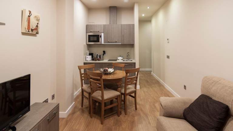 Die Apartments sind mit einem Flachbild-TV, einer voll ausgestatteten Küche mit einem Kühlschrank und einer Mikrowelle sowie einem eigenen Badezimmer mit einem Bidet und kostenlosen Pflegeprodukten ausgestattet. Ein voll ausgestattetes Badezimmer mit Dusche und Haartrockner ist ebenfalls vorhanden.