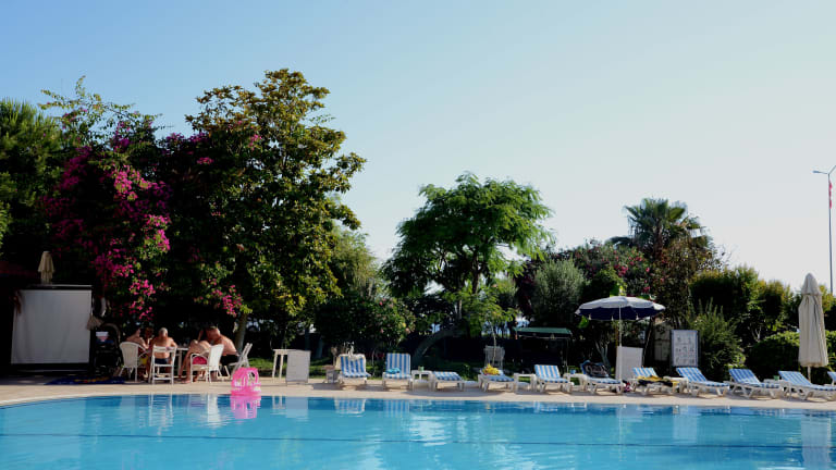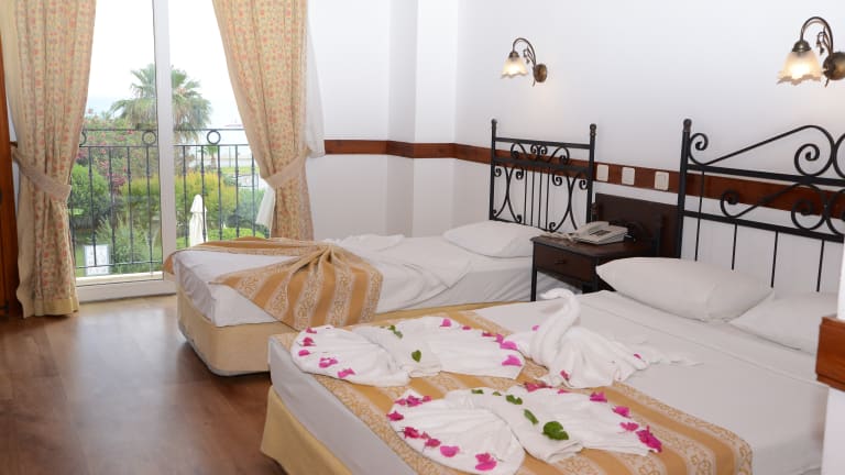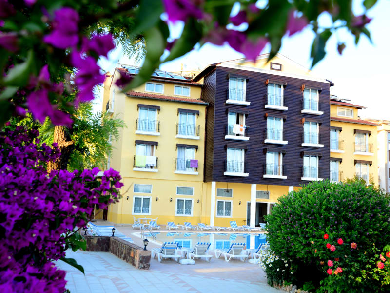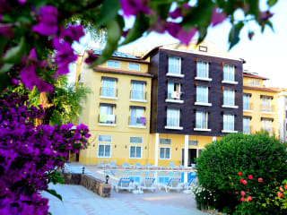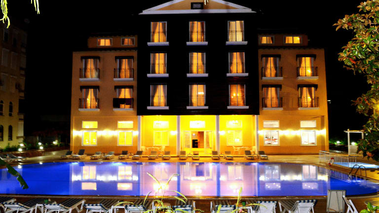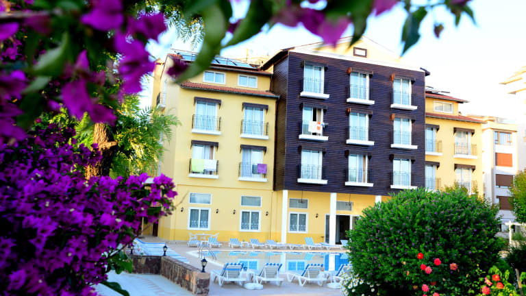 Das Hotel liegt in einem schönen Garten und ist von den Taurus Bergen, dem Mittelmeer und dem Dim Fluss umgeben. Ins Ortszentrum sind es ca. 4 km, dort finden die Gäste diverse Geschäfte, Restaurants, Bars und Nachtclubs. Die Burg von Alanya ist ungefähr 8 km vom Hotel entfernt, zum Flughafen Antalya sind es etwa 125 km. Die Entfernung zum Strand beträgt ca. 50 m und die Entfernung zum Golfplatz ca. 100 km.