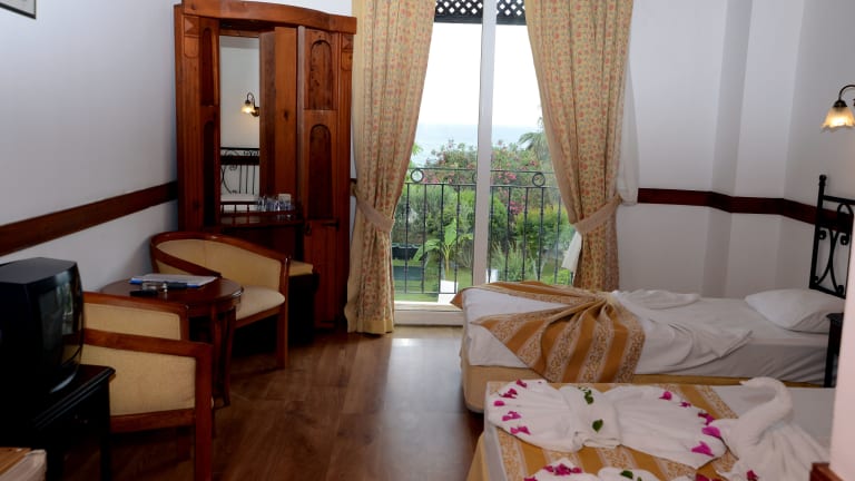 Die Zimmer verfügen über eine Klimaanlage, individuell steuerbare Heizung und sind meist mit einem Balkon oder einer Terrasse ausgestattet. Die Zimmer sind mit Teppichböden ausgelegt und bieten ein Doppelbett. Ein Safe schützt das Eigentum der Gäste, ein Minikühlschrank, Telefon, TV mit Satelliten-/Kabelempfang und gegen Gebühr WiFi sind ebenfalls vorhanden. Zur sanitären Ausstattung gehören Dusche und Badewanne sowie ein Haartrockner. Rollstuhlgerechte Zimmer sind auf Anfrage buchbar. Insgesamt stehen 36 Nichtraucherzimmer zur Verfügung.