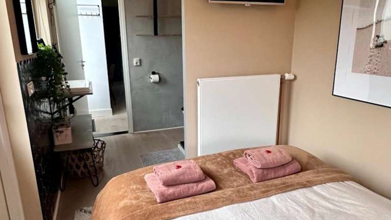 Die Ferienwohnung verfügt über ein Schlafzimmer und ist mit einer Küche ausgestattet, die über einen Kühlschrank und einen Geschirrspüler verfügt. Ein Flachbild-TV, ein Sitzbereich sowie ein Badezimmer mit Dusche sind ebenfalls vorhanden. Handtücher und Bettwäsche werden zur Verfügung gestellt.