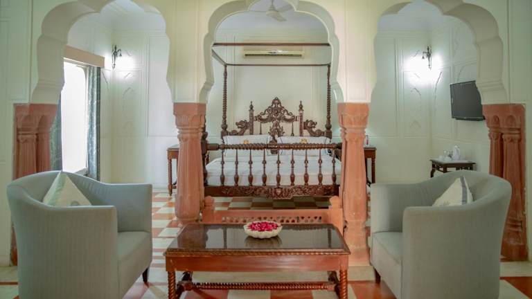 Die Unterkunft Shahpura Abhaneri Resort befindet sich in Bandikui, umgeben von einer ansprechenden Gartenlandschaft.