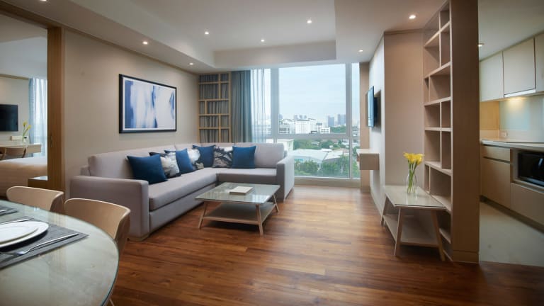Situated beside vibrant New Petchburi Road in the heart of the city, the Amari Residences Bangkok is within easy access of the business district, tourist attractions and Bangkok Hospital. The city’s underground MRT system is close at hand, as is the Airport Link, connecting Bangkok’s Suvarnabhumi International Airport to the city centre. GPS: 13.748215, 100.584885