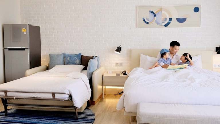 Die Zimmer verfügen über eine Klimaanlage und ein persönliches Badezimmer mit Dusche, Haartrockner und kostenlosen Pflegeprodukten. Einige Zimmer bieten einen Balkon oder eine Terrasse, um entspannt die Aussicht zu geniessen. Jedes Zimmer ist mit einem Queensize-Bett oder Kingsize-Bett, einem TV-Gerät, einem Wasserkocher und kostenlosem Wifi ausgestattet. Ein Safe ermöglicht eine sichere Aufbewahrung von Wertsachen. Hausschuhe und ein Bügelset sind für zusätzlichen Komfort vorhanden.
