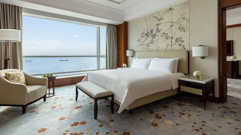 Die klimatisierten Zimmer bieten entweder einen Blick auf die Stadt oder den Golf von Bohai. Jedes Zimmer verfügt über einen Balkon, einen Flachbild-TV, eine Minibar, einen Kühlschrank, einen Safe und einen Wasserkocher. Im eigenen Bad liegen Hausschuhe und Pflegeprodukte bereit.
