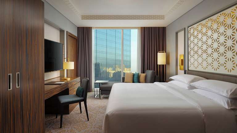 Jedes Zimmer im Sheraton Astana Hotel ist ausgestattet mit einem Schreibtisch, einem Flachbild-TV mit internationalen Kanälen, einem eigenen Bad sowie einer Minibar und einer Kaffeemaschine. Die Zimmer sind schallisoliert und bieten somit eine ruhige Atmosphäre.