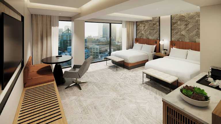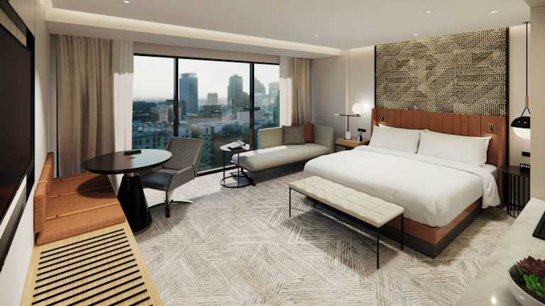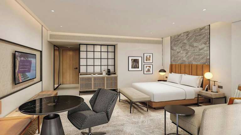 Die Zimmer sind klimatisiert und mit Teppichboden ausgestattet, dabei stehen ein Doppelbett oder ein Kingsize-Bett zur Verfügung. Zusätzlich sind sie mit einem Safe, einer Minibar, Tee- und Kaffeezubereitungsmöglichkeiten sowie modernen Kommunikationsmitteln wie Telefon und TV ausgestattet. Das Badezimmer bietet eine Dusche und eine Badewanne sowie einen Haartrockner. Es gibt auch rollstuhlgerechte Zimmer und Familien- sowie Nichtraucherzimmer.