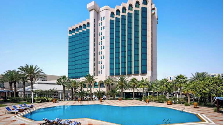 Das Sheraton Dammam Hotel & Convention Centre in der Innenstadt von Dammam bietet einen luxuriösen Wellnessbereich, mehrere Pools und eine breite Auswahl an Restaurants. Die Zimmer bieten einen atemberaubenden Panoramablick auf den Arabischen Golf und sind stilvoll mit cremefarbenen Tönen, hochwertigen Stoffen und luxuriösen Möbeln eingerichtet. Das Fitnessstudio ist mit modernsten Geräten ausgestattet und bietet einen Blick auf den Hotelgarten. Weibliche Gäste können den separaten Fitnessraum im Shine Spa nutzen, in dem sich auch ein Innenpool befindet. Zu den weiteren Annehmlichkeiten gehören ein beheizter Whirlpool, eine Sauna und Außenpools. Die gastronomische Vielfalt im Sheraton Dammam umfasst internationale Themenbuffets sowie ein italienisches Restaurant. Im gemütlichen Vienna Café werden verschiedene Snacks, aromatische Kaffeespezialitäten und Gebäck angeboten.