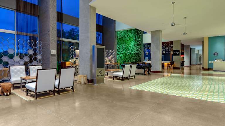 Das Sheraton Hotel San Jose hat 171 Zimmer und bietet seinen Gästen eine moderne Ausstattung sowie eine Heimelige Atmosphäre. Es verfügt über einen Aufzug sowie eine Vielzahl von Serviceleistungen, darunter eine Gepäckaufbewahrung, einen Geldautomaten und eine Wechselstube. Das freundliche Personal an der Rezeption ist 24 Stunden am Tag für alle Anliegen erreichbar und unterstützt gerne bei der Buchung von Ausflügen. Ein schöner Garten und ein Spielplatz stehen zur Verfügung, ebenso wie ein TV-Raum. Das Hotel hat eine Garage für Gäste, die mit dem Auto anreisen.