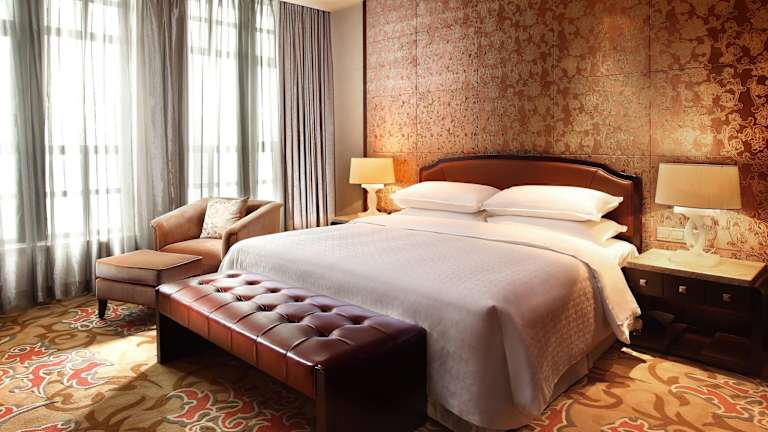 Die Zimmer des Sheraton Jiangyin sind modern ausgestattet und bieten Annehmlichkeiten wie Klimaanlage, eine Minibar, einen Safe, einen Schreibtisch sowie einen Minikühlschrank und eine Tee-/Kaffeemaschine. Die eleganten Badezimmer sind mit einer Badewanne und einer Dusche ausgestattet. Auch rollstuhlgerechte Zimmer sind verfügbar. Für Familien und Nichtraucher stehen spezielle Zimmerangebote bereit.