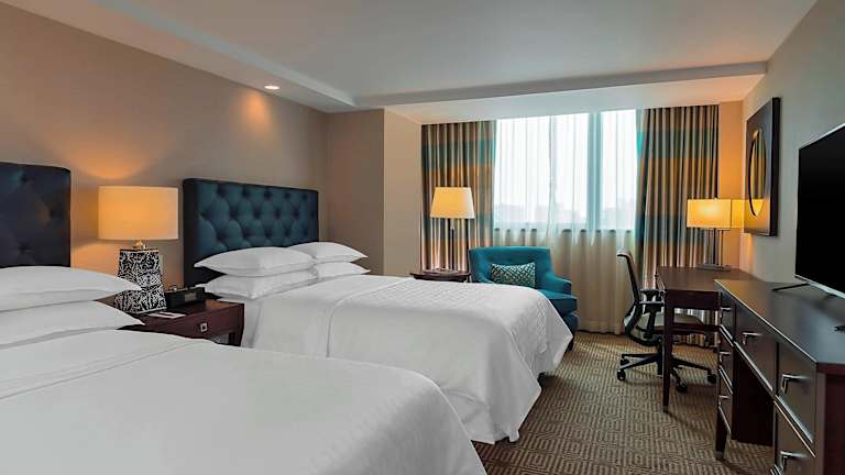 Die Zimmer im Sheraton Maria Isabel Hotel sind komfortabel und bieten eine moderne Ausstattung. Jedes Zimmer verfügt über eine individuell regulierbare Klimaanlage, eine Minibar und Kabel-TV. Die Betten sind mit maßgeschneiderten Matratzen, Bettdecken und Kissen ausgestattet, um Ihnen einen erholsamen Schlaf zu bieten. Die geräumigen Badezimmer sind elegant gestaltet und verfügen entweder über eine Badewanne oder eine Dusche. Ein Schreibtisch, ein Safe und ein Bügeleisen/-brett sind ebenfalls vorhanden.