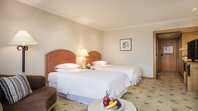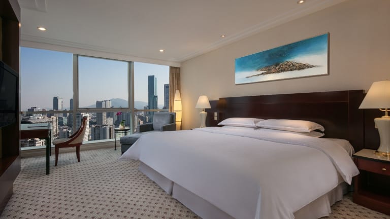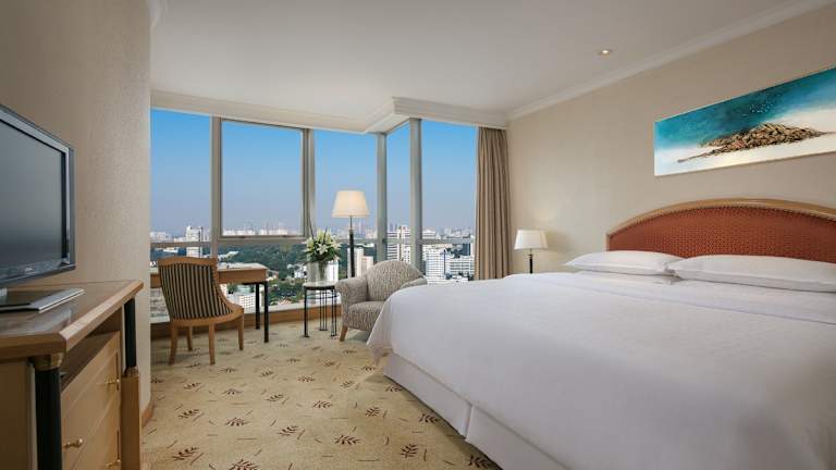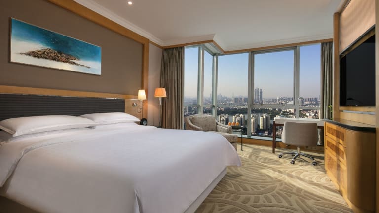 Das Sheraton Nanjing Kingsley Hotel & Towers bietet insgesamt 350 Zimmer, die auf 41 Etagen verteilt sind. Die Zimmer sind geräumig und klimatisiert, modern eingerichtet und bieten Annehmlichkeiten wie einen eigenen Safe, Kaffee- und Teezubehör sowie einen Flachbild-Kabel-TV. Die Badezimmer sind gut ausgestattet und verfügen über kostenfreie Pflegeprodukte sowie einen Haartrockner.