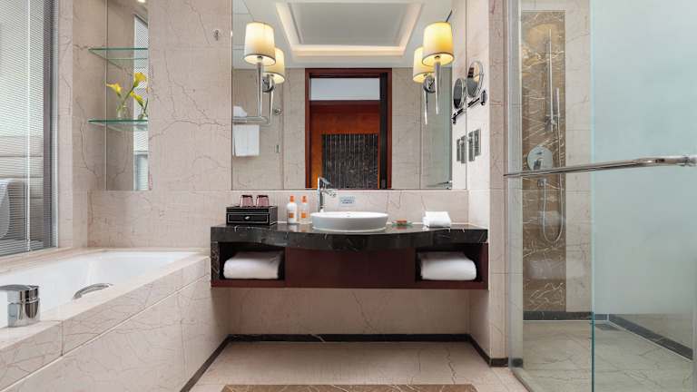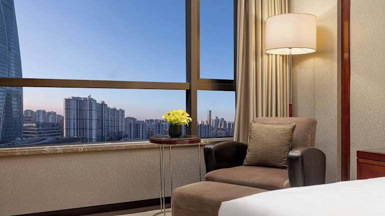 Die Zimmer im Sheraton Tianjin Binhai Hotel sind klimatisiert und bieten ein Doppelbett sowie eine Vielzahl von Annehmlichkeiten, wie einen Safe und einen Minikühlschrank. Zudem stehen eine Tee-/Kaffeemaschine, ein Bügelset und eine Hosenpresse zur Verfügung. Jedes Zimmer hat ein modernes Badezimmer mit Dusche und Badewanne, Haartrockner sowie Bademäntel. Gegen Gebühr ist WLAN verfügbar. Es gibt auch rollstuhlgerechte Zimmer mit barrierefreien Badezimmern.