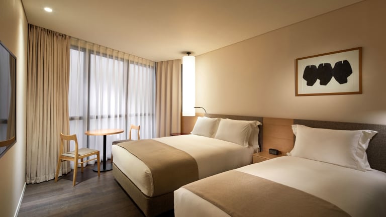 Die klimatisierten Zimmer verfügen über ein Doppelbett sowie ein eigenes Badezimmer mit Bidet. Zu den Annehmlichkeiten gehören ein Schreibtisch, ein Wasserkocher, ein Kühlschrank, ein Safe, ein Flachbild-TV, ein Kleiderschrank und kostenloses Wifi. Es sind familien- und nichtraucherfreundliche Zimmer verfügbar, ebenso rollstuhlgerechte Optionen.