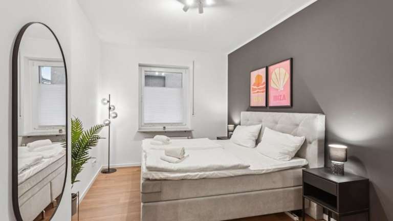Die SHINY HOMES - Stadtnahe 3-Zimmer Wohnung ist eine gemütliche Ferienwohnung, die durch ihre zentrale Lage und vielseitige Ausstattung bestechen kann. Die Unterkunft bietet einen kostenlosen Privatparkplatz sowie einen Geldautomaten und ermöglicht den Gästen den Zugang zu kostenlosem Wifi.