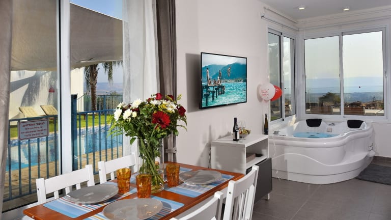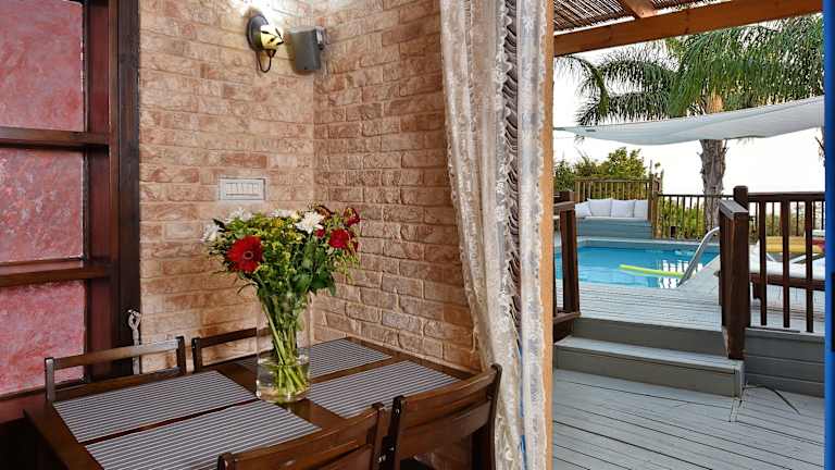 Das shmulik's resort couples or families only bietet klimatisierte Übernachtungsmöglichkeiten mit kostenlosem Wifi, einer Terrasse und einem Kinderspielplatz. Es gibt einen Whirlpool sowie einen Aussenpool, der ganzjährig zugänglich ist. Die Unterkunft ist allergikerfreundlich und Nichtraucherbereich. Junggesellen- oder Junggesellinnenabschiede sind nicht erlaubt, um ein ruhiges Ambiente für die Gäste zu gewährleisten.
