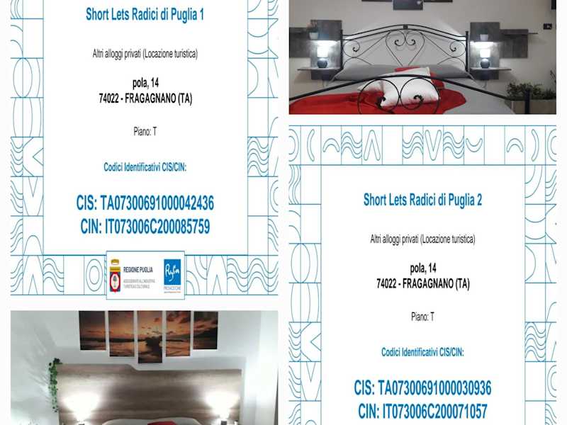 Die Unterkunft SHORT LETS Radici di Puglia befindet sich in Fragagnano, etwa 53 km vom Flughafen Brindisi entfernt. Nahegelegene Sehenswürdigkeiten sind unter anderem das MARTA − Archäologisches Nationalmuseum Tarent (23 km) und das Castello Aragonese (ebenfalls 23 km) sowie die Kathedrale von Tarent, die 25 km entfernt liegt.