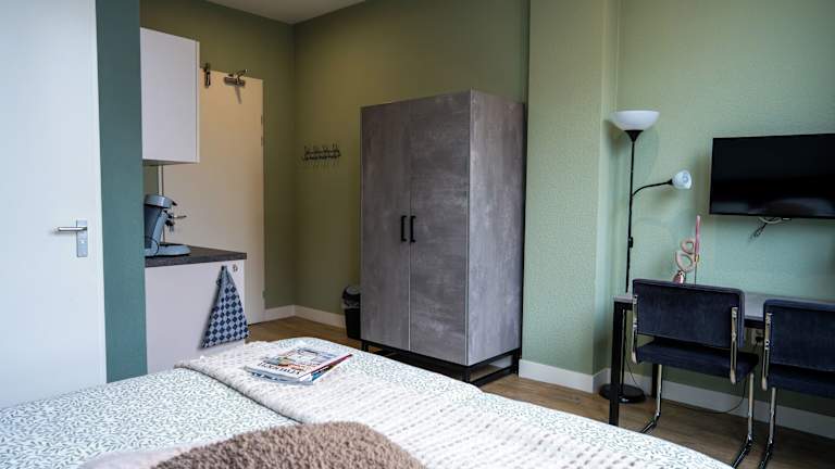 In der Unterkunft steht eine Gemeinschaftsküche zur Verfügung. Zudem ist Essenslieferung in die Unterkunft möglich.