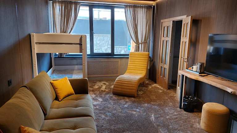 Im Shymbulak Resort Hotel stehen Gästen komfortabel eingerichtete Zimmer mit einem klassischen Stil zur Verfügung. Alle Zimmer bieten eine malerische Aussicht auf die Stadt oder das Medeu-Tal und sind mit Flachbild-TVs ausgestattet. WLAN ist kostenfrei. In der Unterkunft finden Gäste ein grosses Café, eine Sauna und verschiedene Annehmlichkeiten.