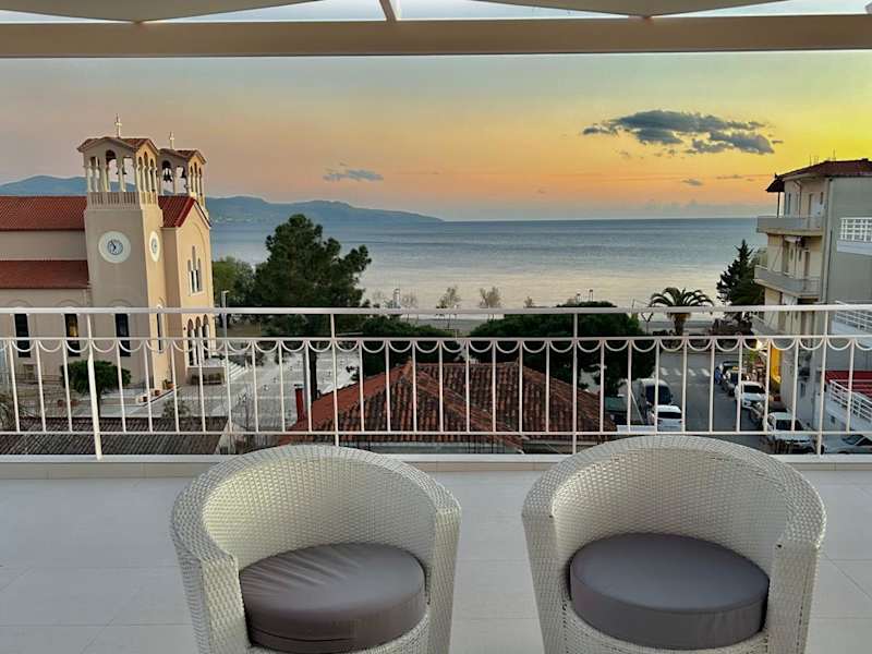 Sia's view bietet Übernachtungsmöglichkeiten mit Meerblick, einem Balkon und einer Kaffeemaschine. Die klimatisierte Ferienwohnung ist ideal für einen entspannenden Aufenthalt und ist mit einer Terrasse ausgestattet, die einen schönen Stadtblick bietet.