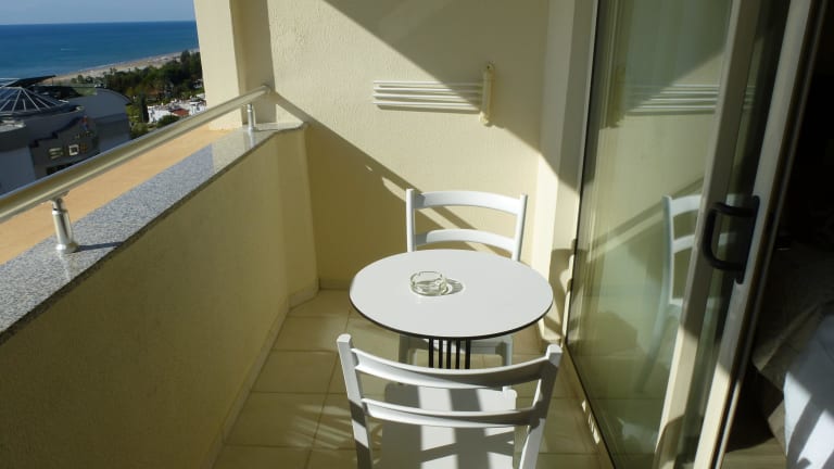 ZIMMERTYPEN Standardzimmer(Doppelzimmer): • Lage: im Hauptgebäude • Die modern eingerichteten Zimmer. • Bad oder Dusche/WC • Föhn, Minikühlschrank, Sat.-TV, Telefon, Balkon • WLAN • Safe (gegen Gebühr) • Minibar (inklusive), Inhalt: Minibar wird bei ankuft nur mit Wasser gefüllt. • Auffüllung der Minibar: gegen Gebühr • Klimaanlage, individuell regulierbar, saisonbedingt • auch zur Alleinnutzung • weitere buchbare Optionen: Meerseite gegen Aufpreis buchbar, auch zur Alleinnutzung Annex Zimmer (Doppelzimmer Nebengebäude): • Lage: im Nebengebäude; gegenüber von dem Hauptgebäude im Gegengebäude. Identisch wie die Standardzimmer, im Annex-Gebäude, auf 2 Etagen, kein Aufzug, ca. 40 m vom Hauptgebäude (durch eine Straße getrennt) und ca. 220 m vom Strand entfernt, Landseite. Die Nutzung des Hauptgebäudes ist für alle Hotelgäste. • Bad oder Dusche/WC • Föhn, Minikühlschrank, Sat.-TV, Telefon, Balkon • WLAN • Safe (gegen Gebühr) • Minibar (inklusive), Inhalt: Minibar wird bei ankuft nur mit Wasser gefüllt. • Auffüllung der Minibar: gegen Gebühr • Klimaanlage, individuell regulierbar, saisonbedingt • auch zur Alleinnutzung Eco Annex Zimmer (Doppelzimmer Economy Nebengebäude) • Lage: im Nebengebäude; Im neuem Nebengebäude, auf 2 Etagen, kein Aufzug. Identisch wie die Standardzimmer, ca. 100 m vom Hauptgebäude (durch eine Straße getrennt) und ca. 100 m vom Strand entfernt, Gartenseite. Die Nutzung des Hauptgebäudes ist für alle Hotelgäste. • Bad oder Dusche/WC • Föhn, Minikühlschrank, Sat.-TV, Telefon, Balkon • WLAN • Safe (gegen Gebühr) • Minibar (inklusive), Inhalt: Minibar wird bei ankuft nur mit Wasser gefüllt. • Auffüllung der Minibar: gegen Gebühr • Klimaanlage (inklusive), individuell regulierbar, saisonbedingt • auch zur Alleinnutzung Suite • Sind bei gleicher Ausstattung wie die Doppelzimmer etwas geräumiger, bieten ein Jacuzzi /WC und zusätzlich einen Ankleidebereich. Familienzimmer • Bestehen bei ansonsten ebenfalls ähnlichen Ausstattungselementen aus zwei Schlafräumen mit Verbindungstür. Side Alegria Hotel & Spa - Adults only +16