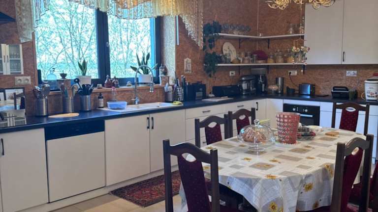 Die Unterkunft verfügt über eine Gemeinschaftsküche, die mit einem Kühlschrank, Geschirrspüler, Ofen und einer Kaffeemaschine ausgestattet ist.