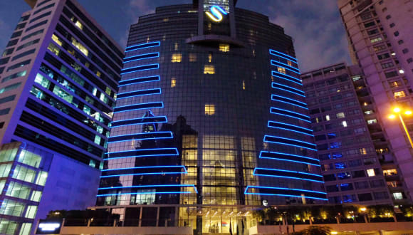 Das Hotel befindet sich in zentraler Lage in Dubai, ca. 600 m vom Stadtzentrum entfernt. Der Strand ist etwa 16 km und der Flughafen ca. 30 km entfernt. Der Golfplatz liegt in einer Entfernung von ca. 1.5 km, und die nächste Bahnhaltestelle ist ca. 200 m entfernt.