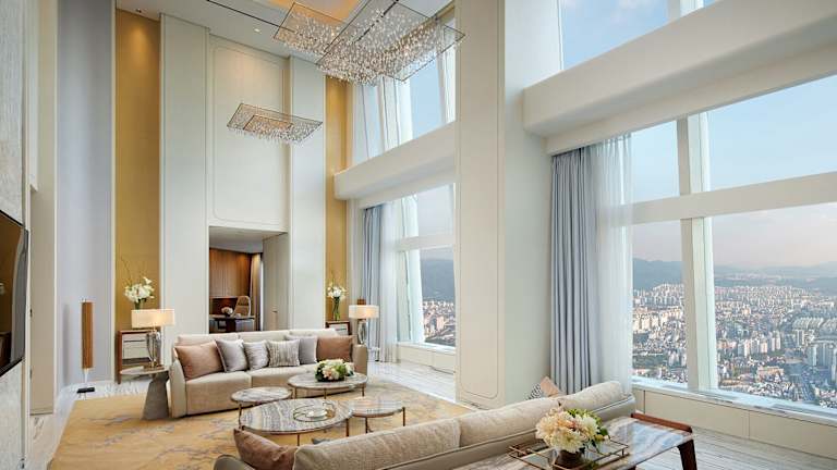 Das Signiel Seoul ist eine hochklassige Unterkunft, die sich zwischen den Etagen 76 und 101 des Lotte World Towers erstreckt. Die 235 Zimmer zeichnen sich durch eine elegante und heimelige Einrichtung aus. Hoteleinrichtungen umfassen eine Champagnerbar, ein mit einem Michelin-Stern ausgezeichnetes Restaurant sowie einen Innen- und einen Aussenpool. Zu den Dienstleistungen gehören Concierge- und Parkservices sowie eine umfassende Unterstützung durch das englischsprachige Personal an der Rezeption.