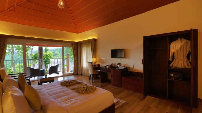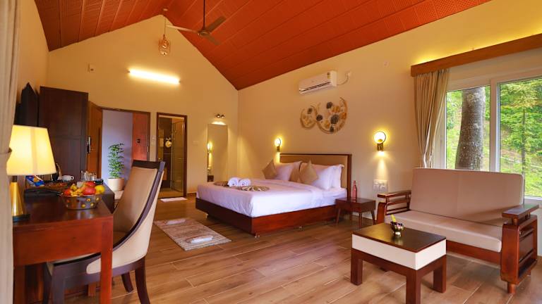 Silent Brook Resort - Coorg bietet Übernachtungsmöglichkeiten in einer heimeligen Umgebung mit einem Garten und einem kostenlosen Privatparkieren. Die Nichtraucher Unterkunft verfügt über eine rund um die Uhr besetzte Rezeption sowie Zimmerservice und kostenloses Wifi.