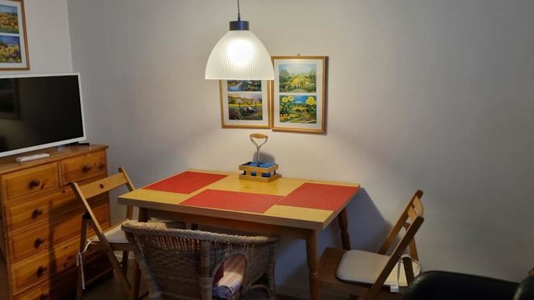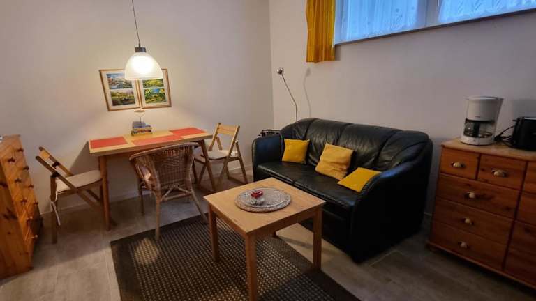 Die Ferienwohnung umfasst ein Schlafzimmer, ein Wohnzimmer sowie eine voll ausgestattete Küchenzeile mit Kühlschrank und Kaffeemaschine. Ein Badezimmer mit Dusche ist ebenfalls vorhanden. Handtücher und Bettwäsche können gegen Aufpreis zur Verfügung gestellt werden.