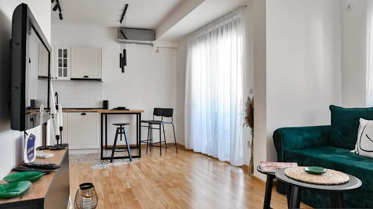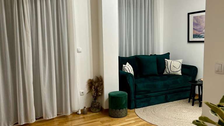 Die Ferienwohnung verfügt über ein Schlafzimmer und ein Wohnzimmer. Die voll ausgestattete Küche beinhaltet einen Kühlschrank und eine Kaffeemaschine. Das Badezimmer ist mit einer Dusche und kostenlosen Pflegeprodukten ausgestattet. Die Unterkunft hat Klimaanlage.