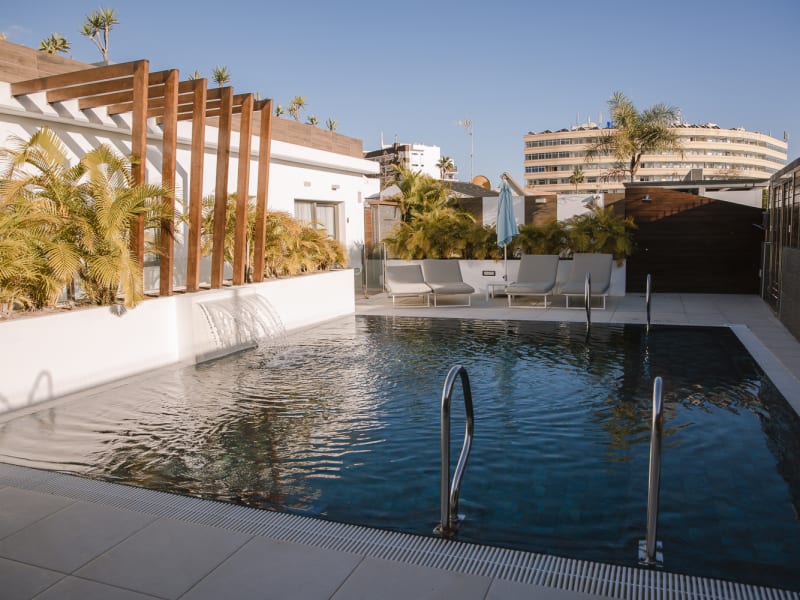 Luxusvillen Designt Für Einen Ruhigen Urlaub Mit VIP Service. Im Zentrum von Playa del Inglés gelegen, einer der bekanntesten und gefragtesten Zonen Gran Canarias, ist diese Anlage mit reduzierter Anzahl an Villen ein fast versteckter Urlaubsrückzugsort. Jede einzelne Villa, mit privater Terrasse (oder großem Balkon), wurde auf einem Stockwerk designt, mit hellen Innenräumen, klaren Linien und moderner und minimalistischer Einrichtung. Im Gemeinschaftsbereich gibt es einen sonnigen Pool im Spa-Stil, der im Winter beheizt ist. Ein Luxushotel wo sich Ruhe und Privatsphäre mit 5-Sterne Service vereinen.