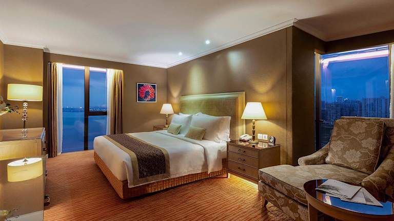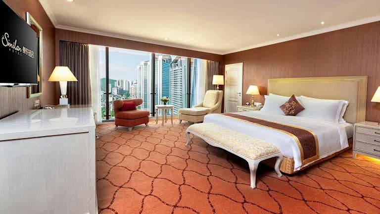 Die Zimmer im Similan Hotel Zhuhai sind mit Klimaanlage, einem Flachbild-Kabel-TV, einem Safe, einer Minibar und einem Wasserkocher ausgestattet. Das eigene Bad bietet sowohl eine Badewanne als auch eine Dusche, weiche Bademäntel und kostenfreie Pflegeprodukte. Einige Zimmer bieten zudem einen Ausblick auf das Meer.