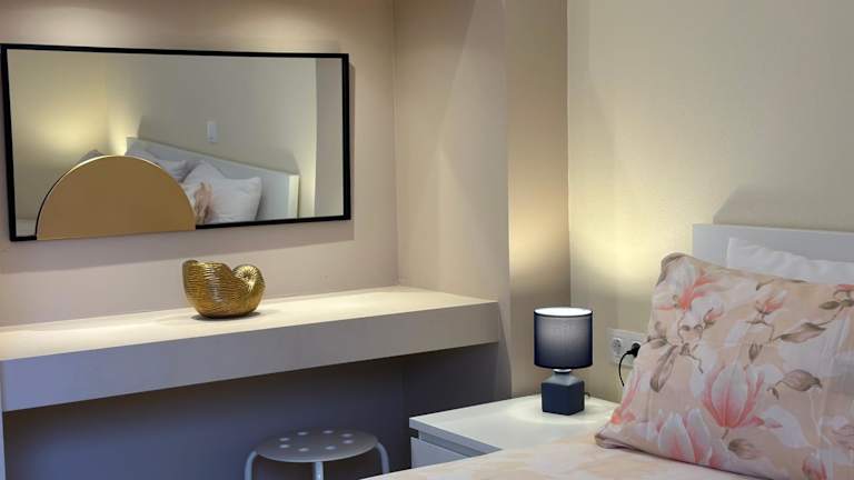 Die Ferienwohnung besteht aus 2 Schlafzimmern, einem Wohnzimmer und einer voll ausgestatteten Küche mit Kühlschrank und Wasserkocher. Zudem ist ein Badezimmer mit Dusche und Haartrockner vorhanden. Handtücher und Bettwäsche werden zur Verfügung gestellt. Die Unterkunft ist klimatisiert und bietet Nichtraucherzimmer sowie Familienzimmer.