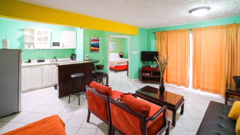 Die Unterkunft besteht aus einem separaten Schlafzimmer, einer voll ausgestatteten Küche mit Kühlschrank und Mikrowelle sowie einem Badezimmer. Zur Ausstattung gehört ein Flachbild-TV.
