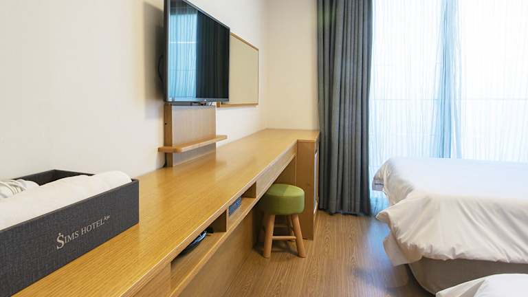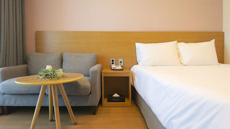 Die Zimmer sind mit einer Klimaanlage und Heizung ausgestattet und bieten ein angenehmes Raumklima. Jedes Zimmer verfügt über ein Doppelbett sowie einen Kühlschrank. Kommunikations- und Unterhaltungsmöglichkeiten sind durch ein Telefon, ein TV-Gerät und kostenfreies Wifi sichergestellt. Im Badezimmer finden die Gäste eine Dusche oder Badewanne sowie Kosmetikartikel vor. Das Hotel bietet sowohl Familienzimmer als auch Nichtraucherzimmer.