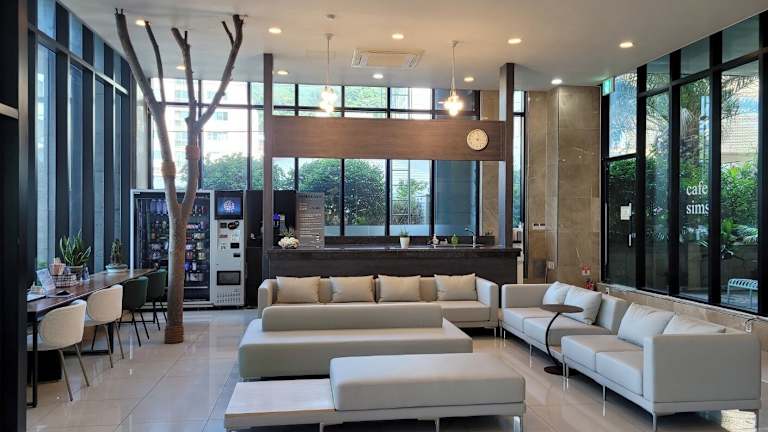 Das Sims Hotel bietet eine Reihe von Annehmlichkeiten, darunter einen Aufzug, eine Rezeption, einen Gepäckaufbewahrungsdienst, einen Getränkautomaten sowie einen TV-Raum. WLAN steht in den öffentlichen Bereichen zur Verfügung. Zudem ist die Unterkunft gegen Gebühr mit einer Garage ausgestattet und ermöglicht gratis das Parkieren auf einem unbewachten Parkplatz, je nach Verfügbarkeit. Ein 24h-Sicherheitsdienst, Zimmerservice und eine Münzwäscherei gehören ebenfalls zum Serviceangebot.
