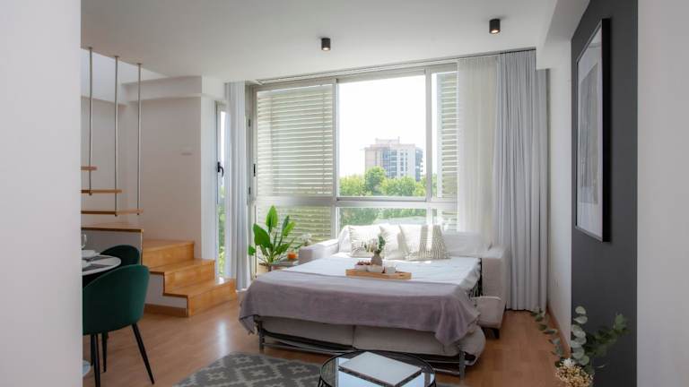 Apartamentos La Pergola Castellón bietet eine moderne Unterkunft mit Stadtblick und kostenlosem Wifi. Die Zimmer sind mit Klimaanlage ausgestattet und verfügen über eine voll ausgestattete Küche sowie einen Essbereich.