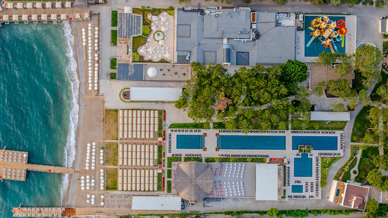 Die in 2023 komplett renovierte, 5 Sterne Ultra All İnclusive Club Anlage verfügt auf einer Gesamtfläche von 68.000 m2 über insgesamt 324 Zimmer, einen hoteleigenen Sand-Kies-Strand mit drei Stegen, neun Pools, einen Aqua Park, ein Spa Center und diverse Einkaufsmöglichkeiten. Nationale und internationale Speisen und Getränke werden in einem Hauptrestaurant, drei A’la Carte Restaurants, drei Snackrestaurants, einer Patisserie und sechs Bars angeboten. Der hoteleigene Sand-Kies-Strand hat eine Länge von 170 m und verfügt über zwei Stege mit Sonnenliegen und Sonnenschirmen sowie einem Steg mit Pavillions. Eine Poollandschaft mit insgesamt vier Becken für Erwachsene und einem Becken für Kinder sorgen für reichlich Abkühlung. Vervollständigt wird das Angebot an Süßwasser-Bademöglichkeiten von einem Wasserpark mit 8 Rutschbahnen, einem Hallenbad für Erwachsene mit Kinderbecken und zwei SIU Concept Pools. Für ausreichend Unterhaltung sorgt sowohl das gut gelaunte Animationsteam mit einem abwechslungsreichen Tages- und Abendprogramm, als auch die verschiedenen professionellen Showauftritte sowie die Live Musik.