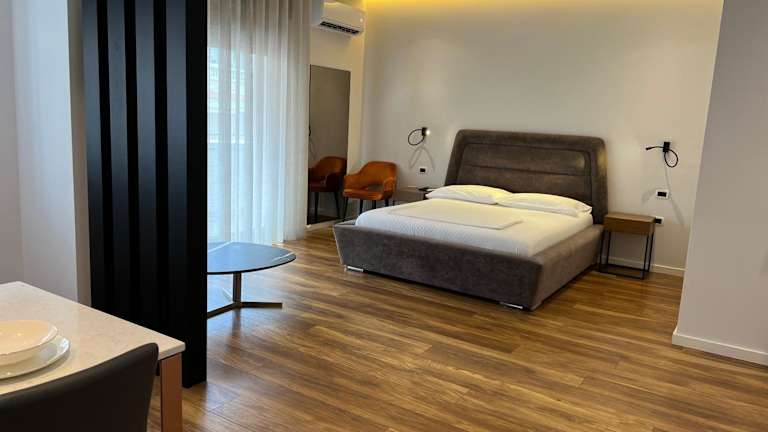 Skanderbeg Center Apartments 1 bietet einen Balkon sowie eine helle und heimelige Ferienwohnung mit kostenlosem Wifi und Privatparkiermöglichkeiten. Die Unterkunft ist klimatisiert und wird von einem privaten Gastgeber geführt. Zum Check-in stehen flexible Zeiten zur Verfügung, mit einer Mindestaltergrenze von 18 Jahren für Gäste.