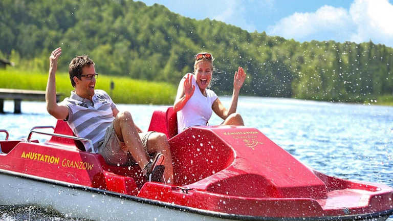 Das Ferienhaus mit Extra-Ausstattung befindet sich in einer malerischen Lage mit Seeblick, umgeben von einem einladenden Garten. Die umliegende Umgebung bietet zahlreiche Sehenswürdigkeiten, darunter das Schloss Mirow, welches ungefähr 3,8 km entfernt liegt. Auch der Bürgersaal Waren ist in einer Entfernung von 48 km erreichbar.