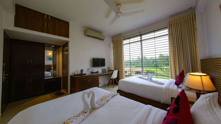 Das SKS Inn bietet Übernachtungsmöglichkeiten mit einem Fitnesscenter, einem Garten, einer Gemeinschaftslounge und einem Wasserpark. Die Rezeption ist rund um die Uhr besetzt und es stehen ein Conciergeservice sowie Flughafentransfers zur Verfügung.